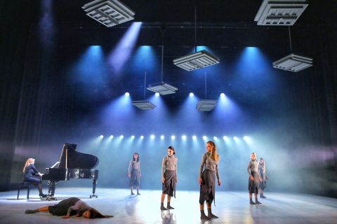 A műben élő zongorakíséret hallható, és a produkció zenéje megegyezik Philip Glass azonos című művének zenéjével.